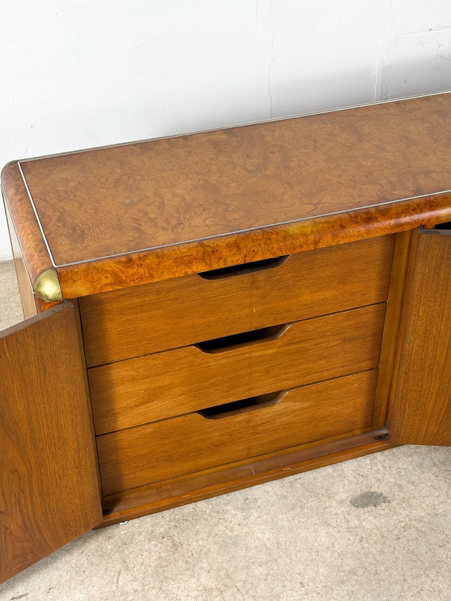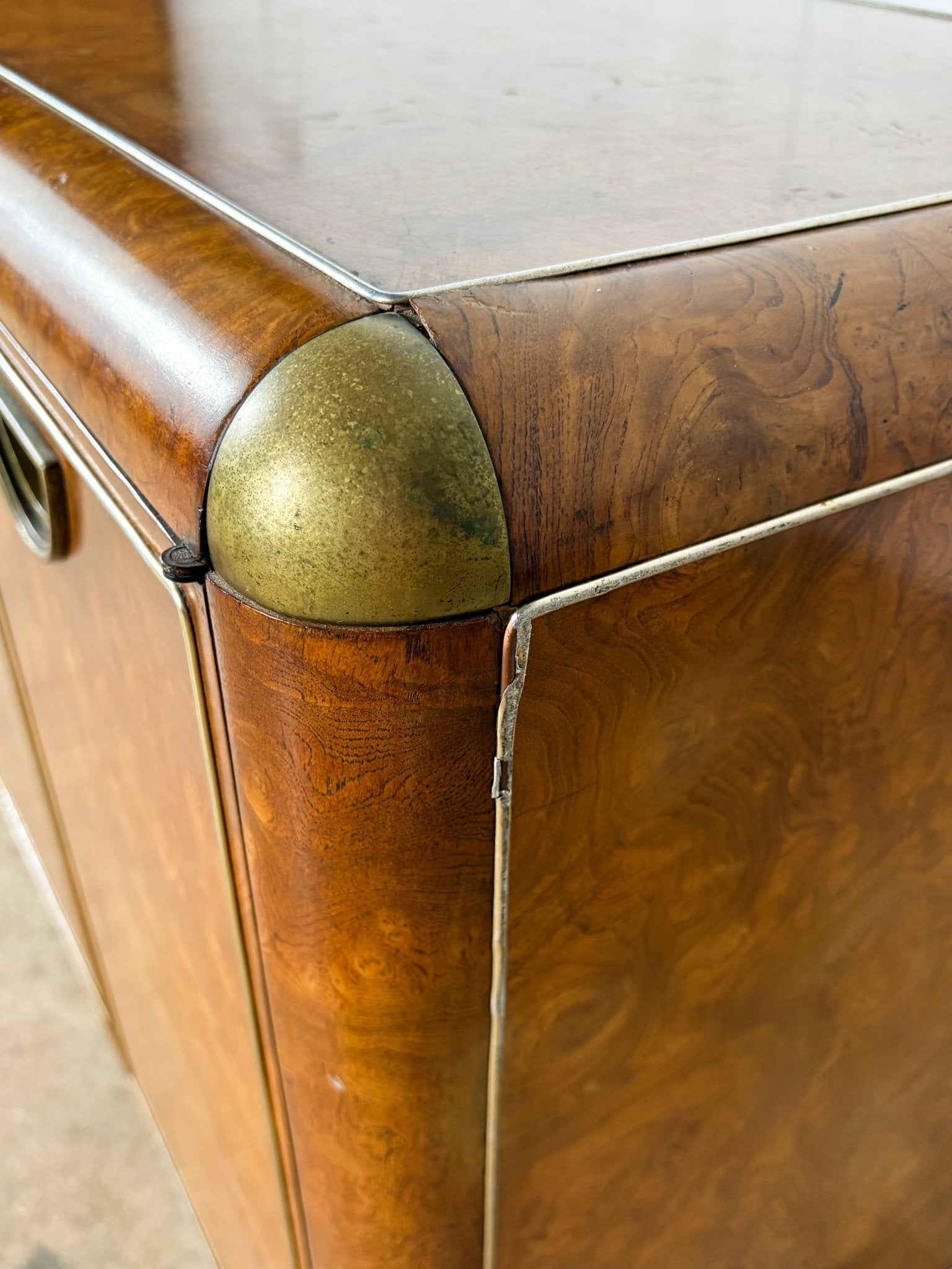 Rounded Edge Burl + Brass Sideboard
