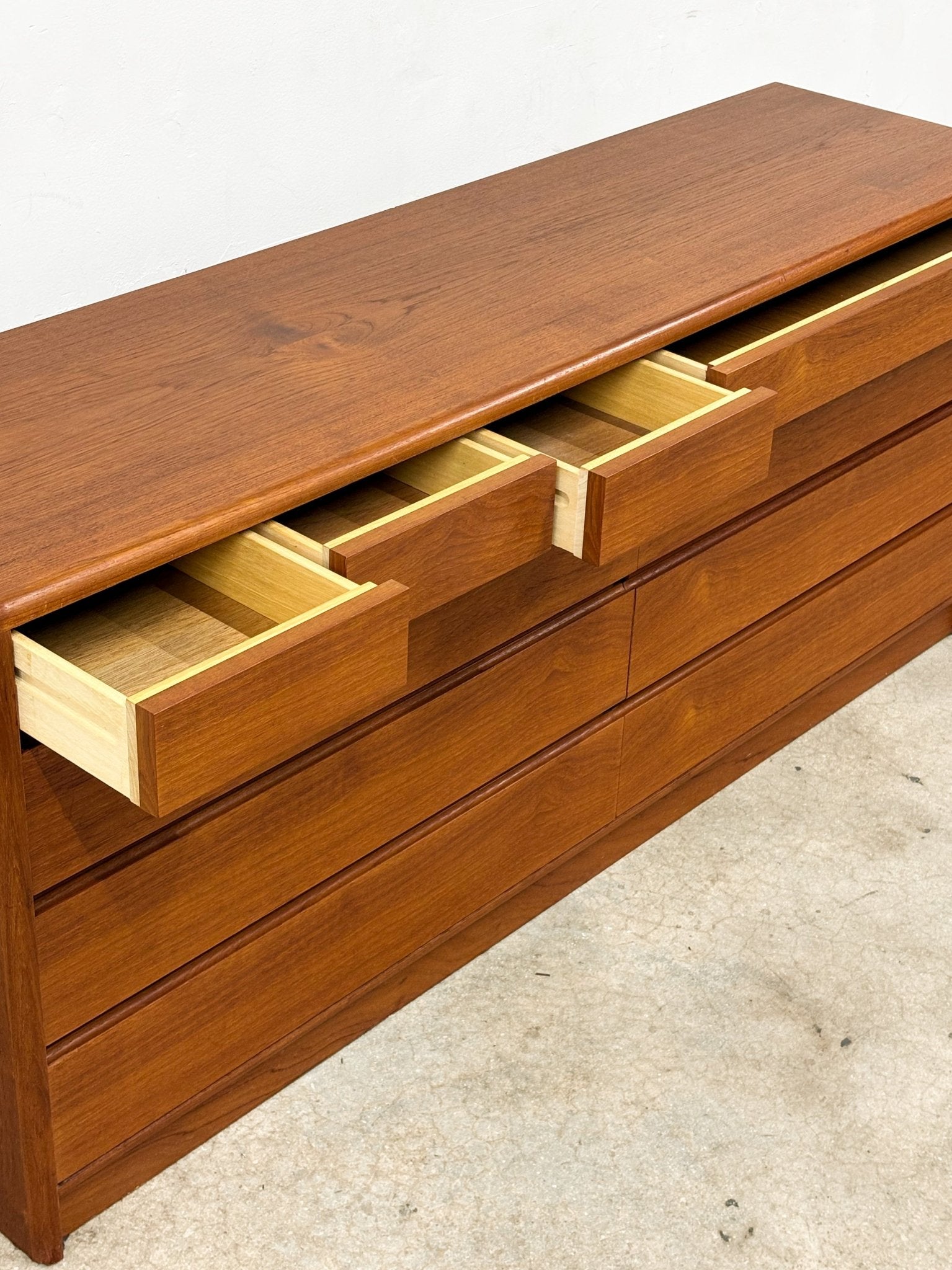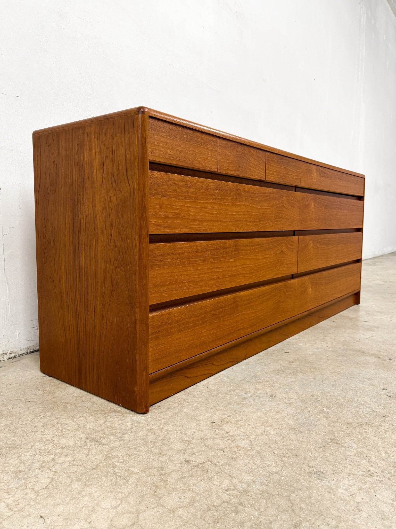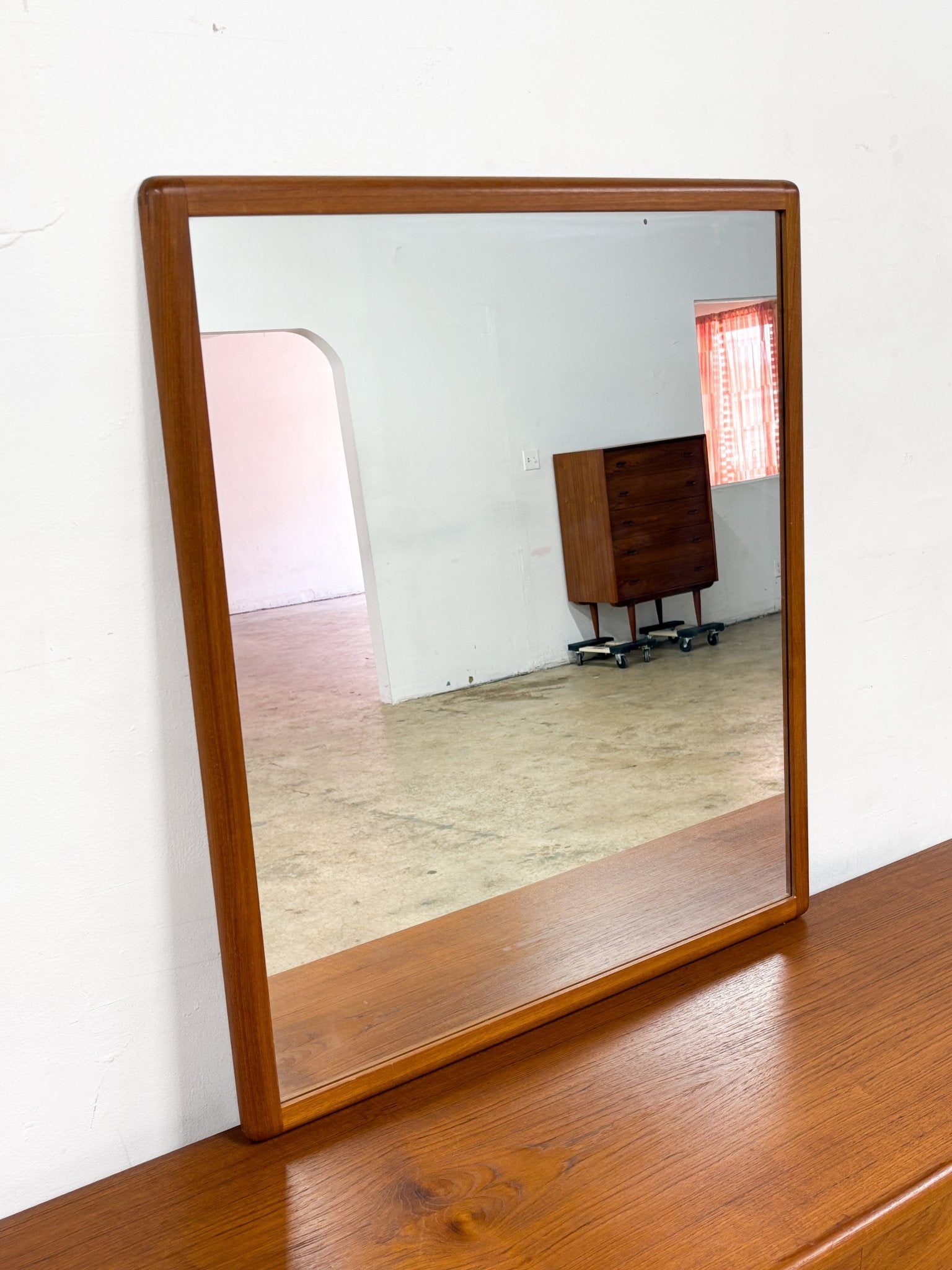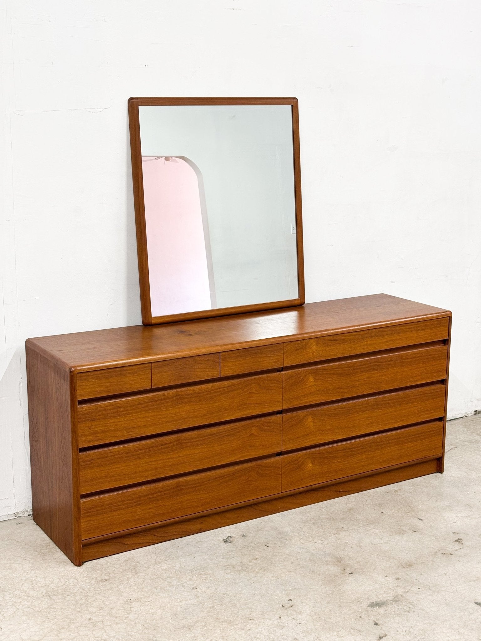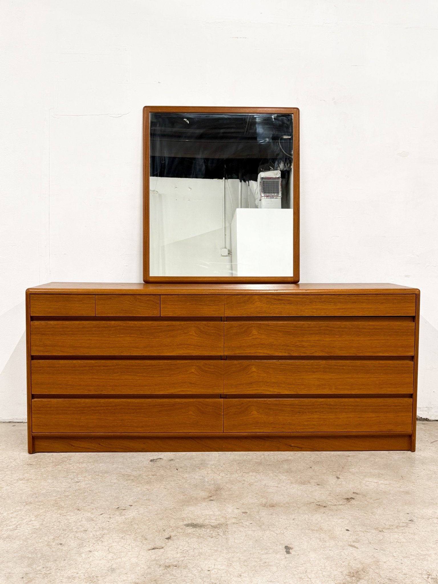 Danish Lowboy Teak Dresser + Mirror, Nordisk Andels-Eksport