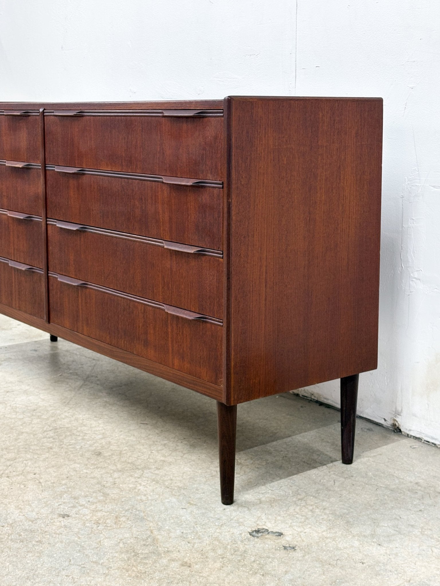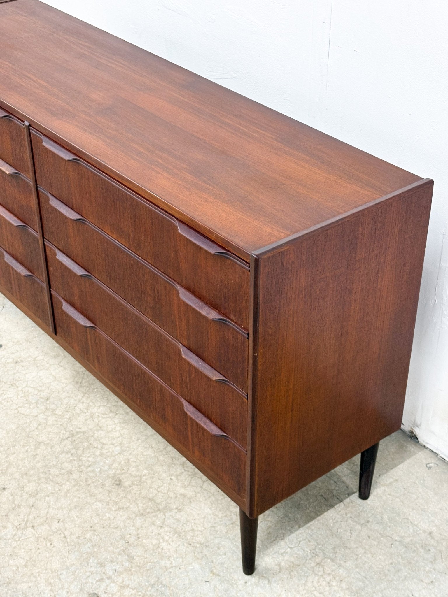 Dark wood 8-drawer dresser in great condition. Small touch-up area on the lower left side — see photos for details.
